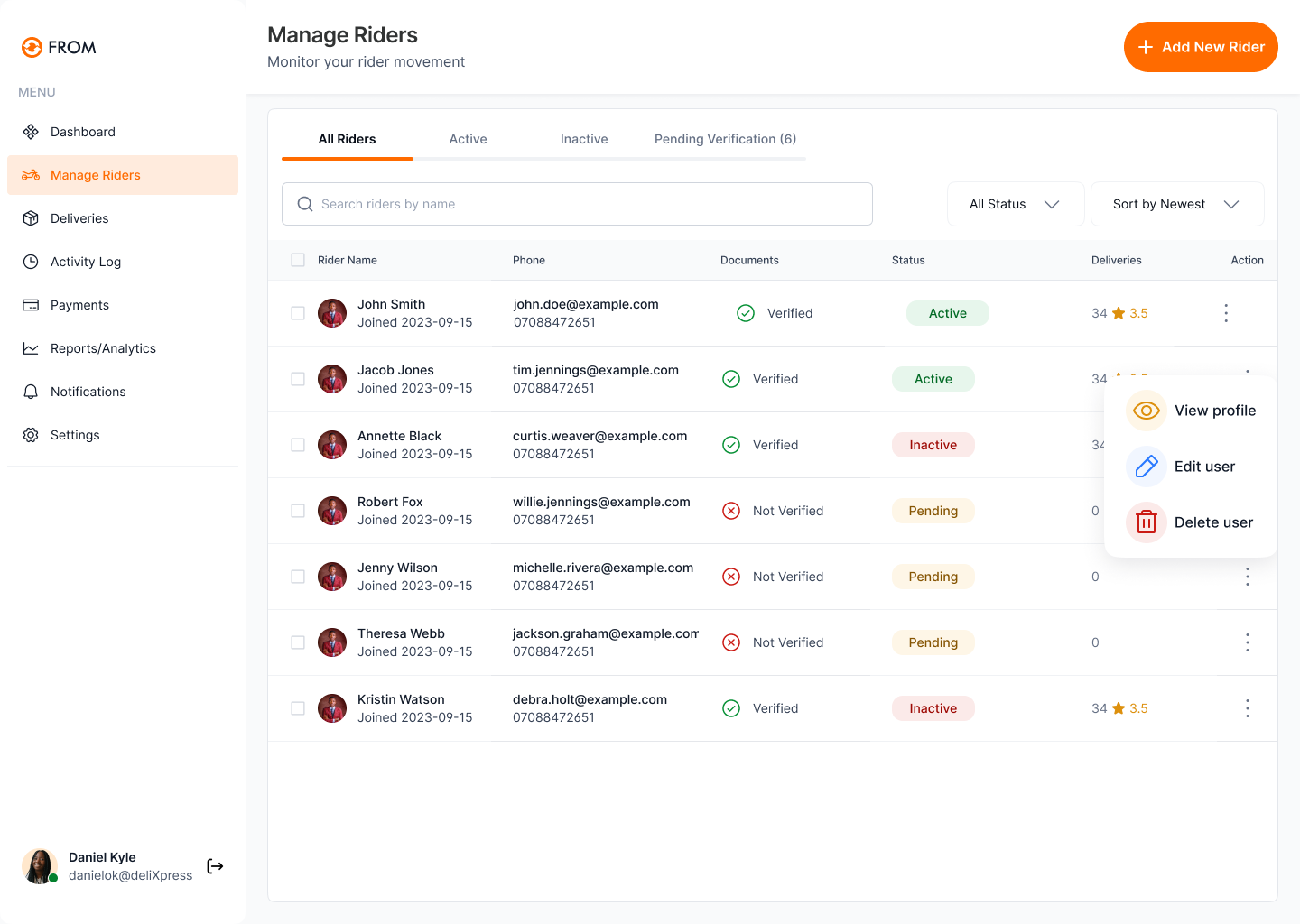 Gain full control over your delivery business. Track riders, monitor trips, and manage earnings beyond traditional hire-purchase limitations.