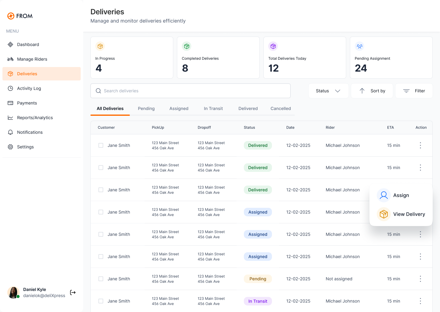 Gain control over your delivery operating system. See everything, Measure everything all on the From App. The central hub for all things deliveries. Connect to riders and send packages with ease.